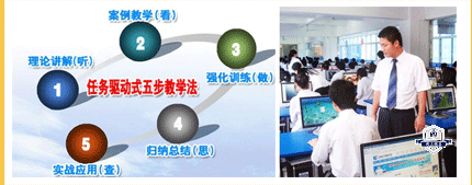 新华电脑教育在全国独创了电脑教育的科学方法——"任务驱动五步教学法"被誉为电脑教育的一次重大改革。